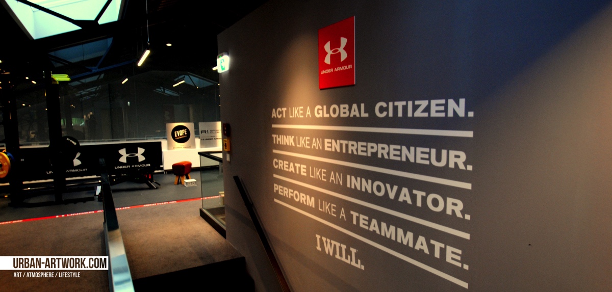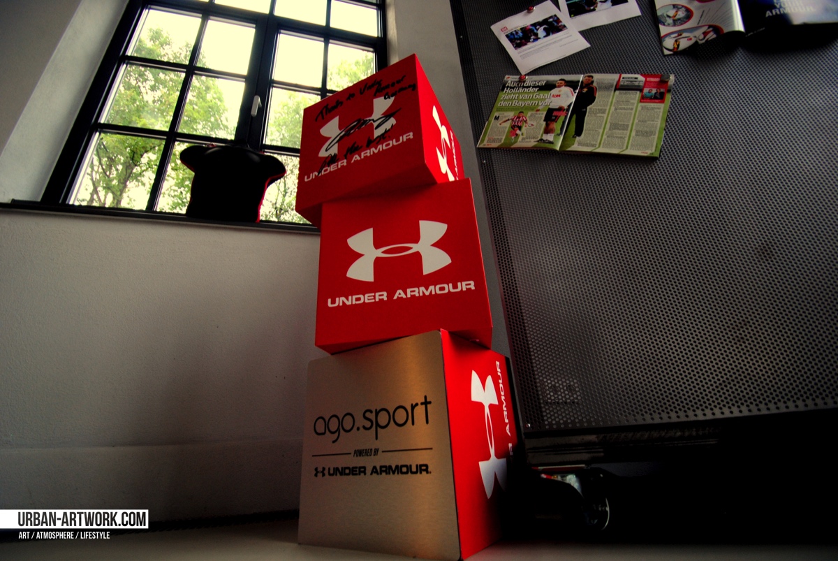 Auch bei der Ausstattung des neuen Office war billig-banner24.de maßgeblich beteiligt, außerdem konnte der Hamburger Digitaldruckdienstleister auf einige großformatige Drucke und Display für das UNDER ARMOUR LAUNCH EVENT produzieren.