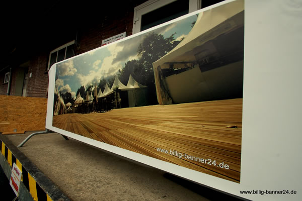 Der Druck ist wie gewohnt haltbar, witterungsbeständig, strapazierfähig und langlebig. Gedruckt wird digital in CMYK, die Planen sind aus PVC Frontlit mit 500 g/m² und entsprechen der Brandschutzklasse B1 nach DIN 4102.