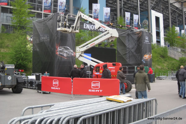Eine billige Werbefläche von rund 2,25 m², die nur darauf wartet zum Einsatz zu kommen. Durch eine gute und ansprechende Standortwerbung bietet sich die Möglichkeit, Inhalte billig und direkt vor der relevanten Zielgruppe zu transportieren. Eine der billigsten Form dieser Werbemaßnahme, ist die einfache aber geniale Werbung auf Absperrgittern. Ihr Unternehmen, ihre Sponsoren und Ihre Partner können sich somit, auf den oft vorgeschriebenen Absperrungen, meistens umsonst aber immer billig, präsentieren.