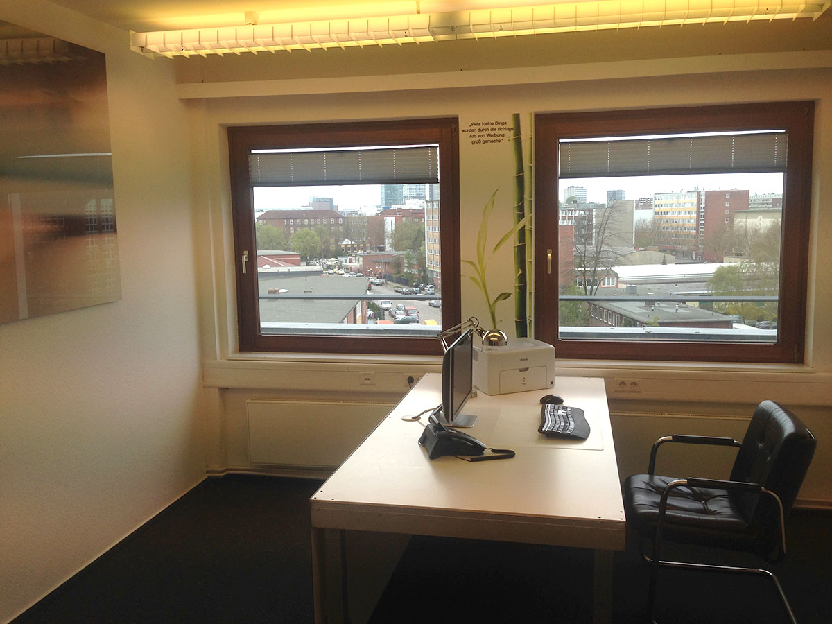 - Ein stylisches, eigenes Büro mit Blick über Hamburg